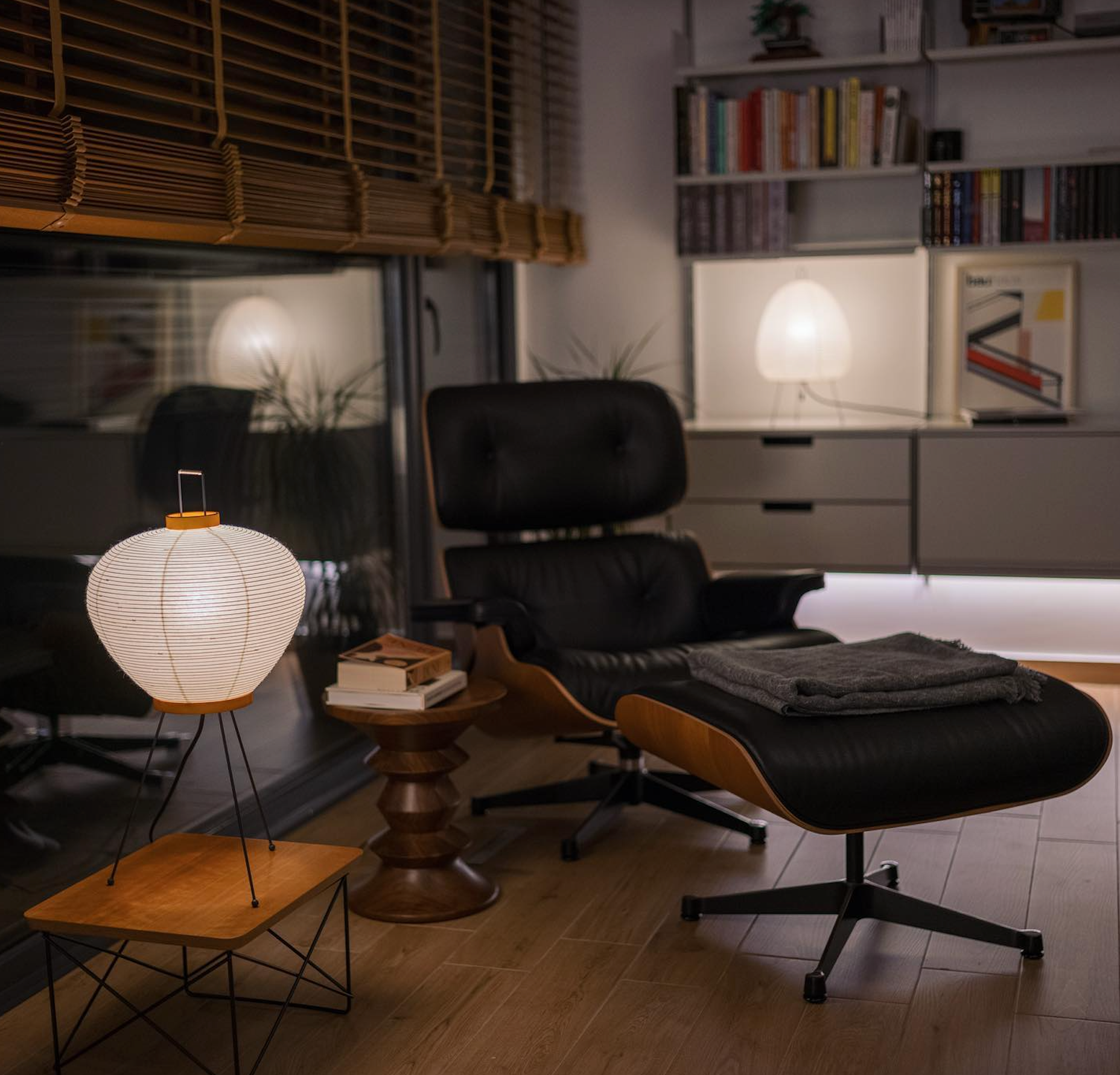 Accoudoirs : Rembourrés en mousse de polyuréthane recyclable V-Foam, revêtements amovibles en cuir ou en tissu. Reliés aux coques d'assise et de dossier par des raccords en caoutchouc et métal (shock mounts).