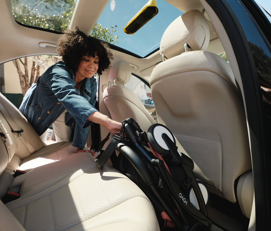 Ultra-compacte, la poussette se fait discrète jusqu'à votre prochaine aventure.